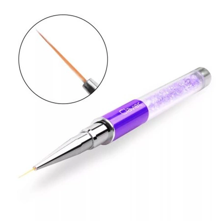 Präzisions-Designer-Nailart-Pinsel in Violett mit 9 mm Borsten. Hergestellt aus hochwertigen Materialien und mit Zirkonen verziert. Mit praktischem und unverzichtbarem Stopfen, damit Ihre Bürste nicht beschädigt wird. Perfekt ausbalanciert, liegt gut in der Hand für müheloses, präzises Arbeiten. Er hat hochwertige synthetische Borsten.