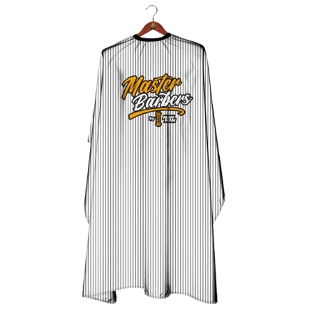 Der stilvolle und funktionelle Umhang von Nishman White Master Barbers ist ein unverzichtbares Accessoire für jeden Friseurladen oder Friseursalon. Hergestellt aus leichtem, antistatischem Material, bietet Schutz für den Kunden und Komfort für den Friseur.