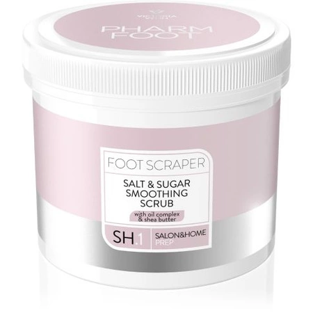 Glättendes Salz-Zucker-Fußpeeling mit Ölkomplex und Sheabutter.